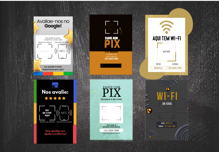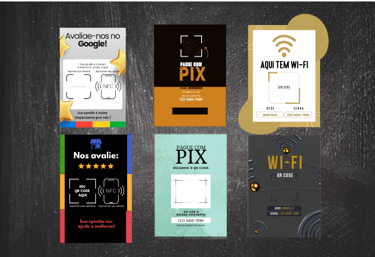 Incentive avaliações no google, pagamentos por pix e login em wifi usando placas com QRCODE e NFC, placas profissionais e tecnológicas. Dispomos de diversos modelos principais, todos totalmente personalizáveis para sua marca.