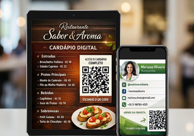 Cardápio digitais interativos com QRCode e cartões de visita virtuais profissionais, facilitando o acesso dos seus clientes as suas redes.